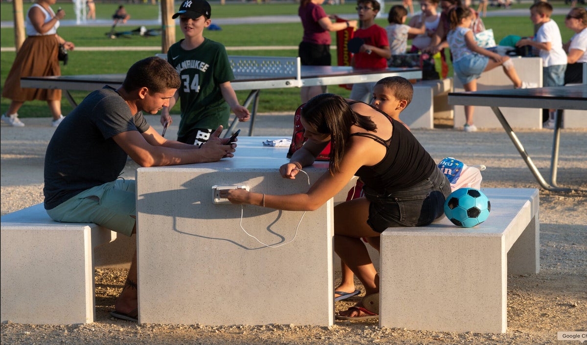 Ping Pong Island and Picnic Island feature Rectangular Andromeda Benches and Tables that encourage people to socialise, study or dine outdoor.