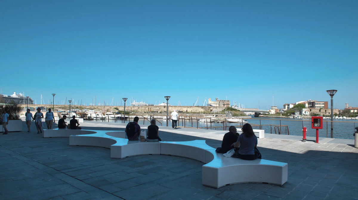 Calzolari ha curato gli esterni che sono arredati con sedute “Folia” e “Andromeda”, fioriere di varie forme e dimensioni e cestini gettacarta, tutto con trattamento antigraffiti.