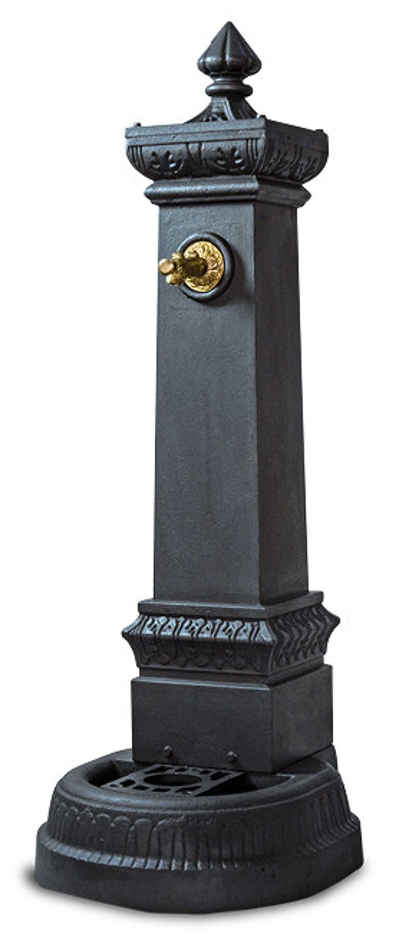 • fontanella in ghisa dal design tradizionale, dotata di rubinetto a pulsante (colore grigio antracite)